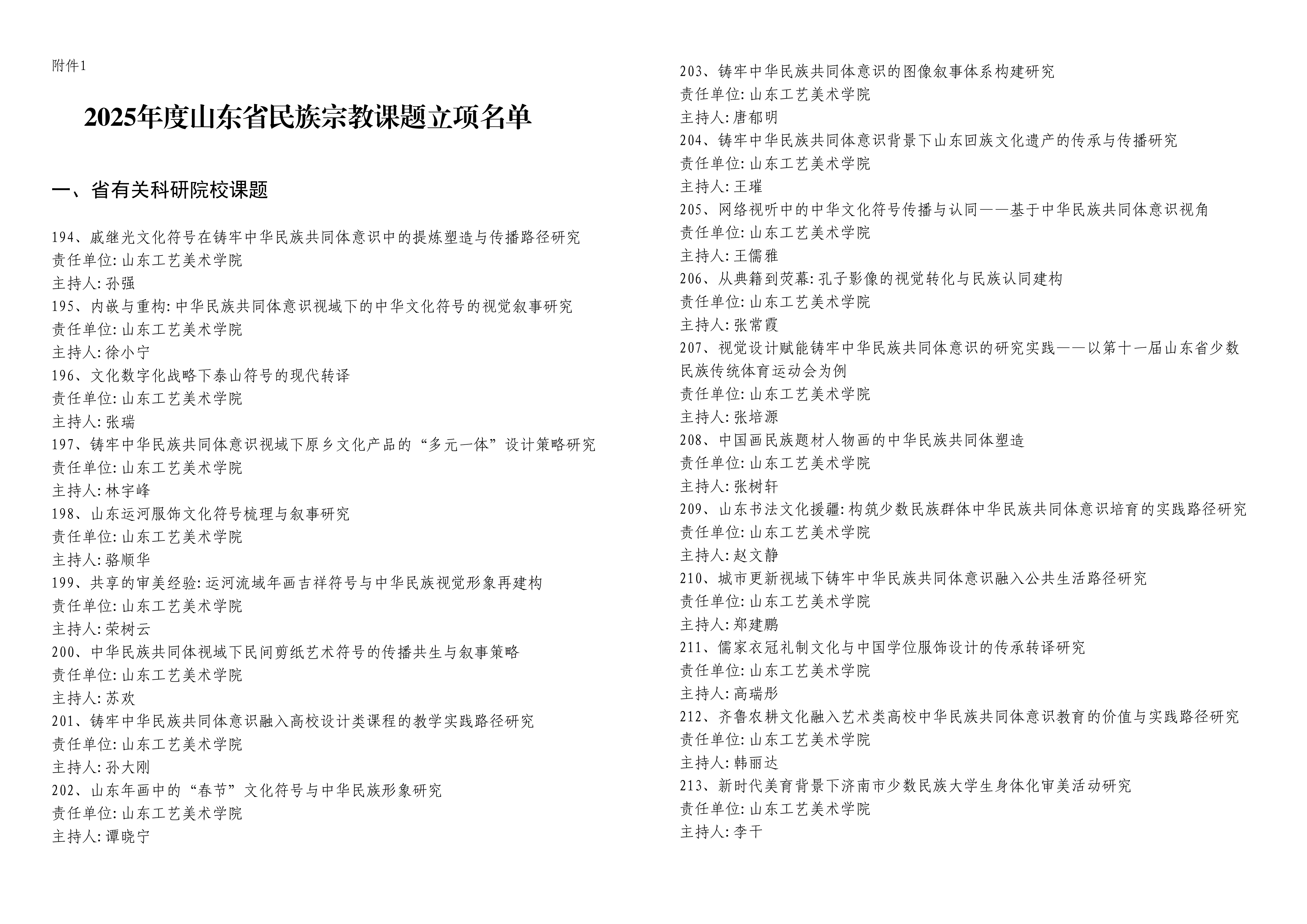 近日,山东省民族宗教事务委员会发布《关于公布2025年山东省民族宗教课题立项的通知》,我校共有20项课题获批立项,为此次课题申报中获批立项最多的单位,充分彰显了学校在民族宗教研究领域的深厚积淀和科研创新能力。