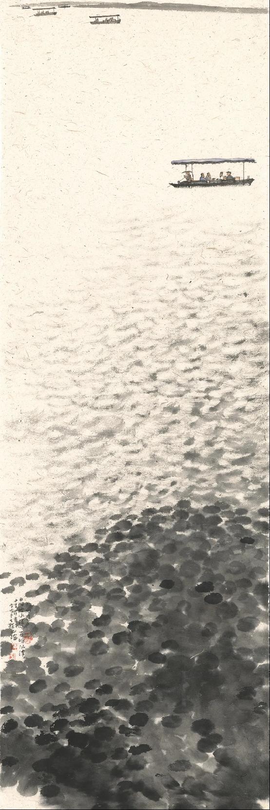 李学明 《天下西湖》 纸本设色 200cm×68cm 2004年