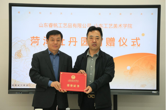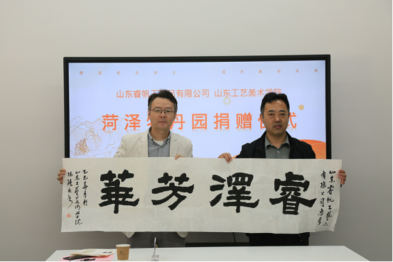 陶建玮表示,山东睿帆工艺品有限公司作为一家深耕实木家具领域的电商企业,始终秉持“以木载道,以器传情”的理念,坚持传承匠心,期待以此次捐赠为起点,以牡丹为媒,在共建材料创新实验室、搭建学生实践基地、非遗工艺传承项目等方面开展广泛合作,共叙木艺丹青新篇章。