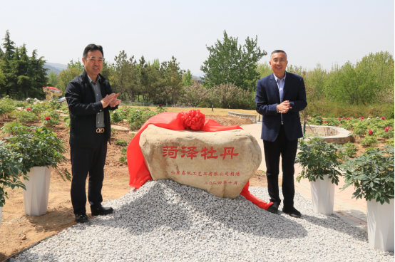 韩世春、陶建玮共同为2025新澳门免费原料大全菏泽牡丹园揭牌。