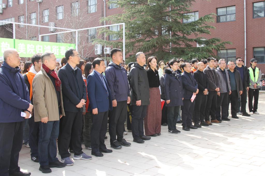 上午10时许,惠风和畅,长清校区景观广场的小喷泉水雾氤氲。在明媚的春光中,院长董占军作现场致辞。他表示:“作为艺术院校,我校以设计智慧为生态赋能,让艺术与自然共生共荣。从‘园林式居住单位’‘绿色校园’建设,到黄河流域生态保护,我校始终将绿色使命融入学科发展,将专业实践与人文情怀有机融合,探索‘生态+设计’双素养培养路径。”