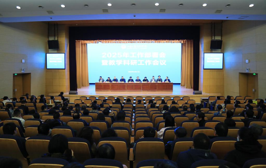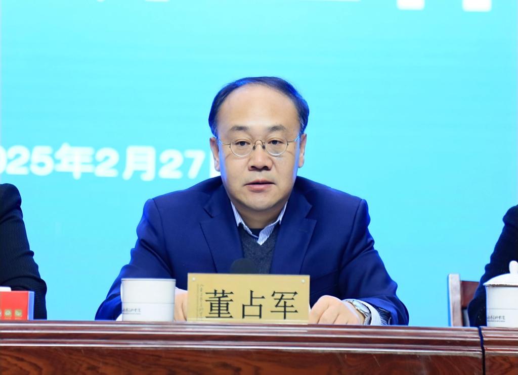 董占军要求,2025年学校工作要从以下五大方面全面发力:一是深入贯彻落实党的二十届三中全会精神,全面加强党的建设。持续强化党的创新理论武装,严格落实意识形态工作责任制,认真贯彻落实新时期党的组织路线,深化全面从严治党,强化监督执纪问责,全面提升党的建设质量和水平,为学校事业发展提供坚强政治保证。二是以申博为牵引,聚力内涵提升,优化人才和学科科研生态。持续加强申请博士单位和博士点工作,全面提高学科专业建设水平,引育并举打造人才高地,聚力培育高层次平台和标志性成果,积极扩大对外交流合作。三是以教学评估整改为契机,聚焦立德树人根本任务,促进学生德智体美劳全面发展。要进一步强化教学工作的中心地位,坚持培根铸魂、启智润心,深入推进思想政治教育改革,提高思政教育质量,加强师德师风建设,打造一流本科教育,努力提升研究生培养质量。四是以进一步深化综合改革为动力,全面提升治理能力和效能,开创事业发展新局面。坚持创新驱动、系统协同,稳步推进全领域各环节综合改革向纵深发展,优化整合学校教育资源,多措并举做好开源节流,不断优化现代大学治理体系,持续激发学校可持续发展的内生动力。五是以新“两馆”建设为重点,推进文化传承创新,建设平安和谐文明校园。坚持守正创新、传承发展,持续推进学校文化建设,不断提升校园文化内涵,丰富校园文化载体,提升文化育人功能,筑牢校园安全防线,切实提升师生获得感、幸福感、安全感。
