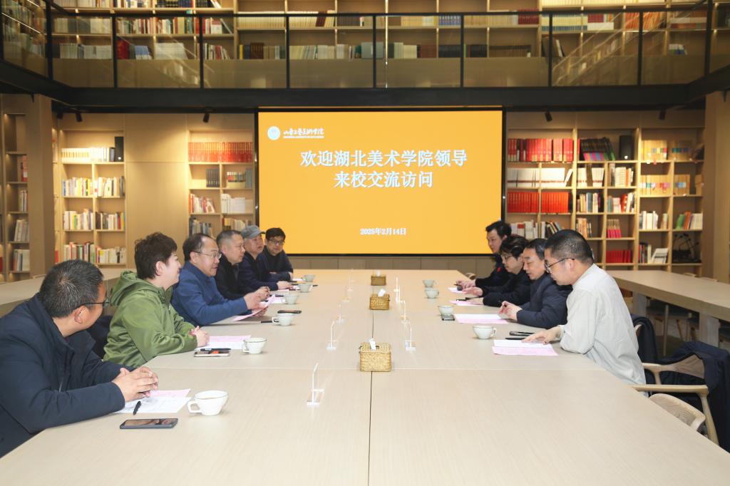 2025年2月14日,湖北美术学院党委副书记、校长周峰一行到访2025新澳门免费原料大全长清校区,展开访问交流活动。2025新澳门免费原料大全院长董占军,党委委员、组织部部长、党委(学院)办公室主任弭友海会见来宾并座谈。