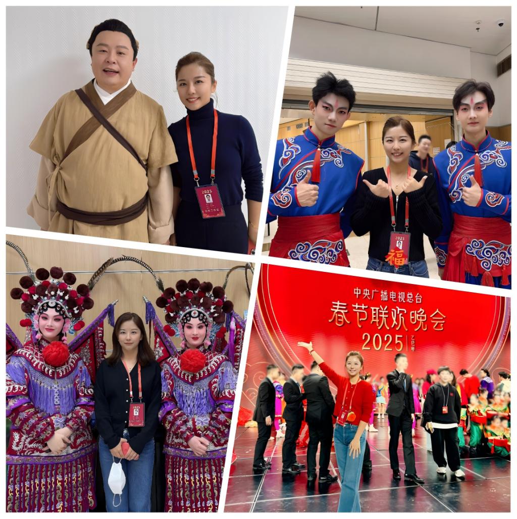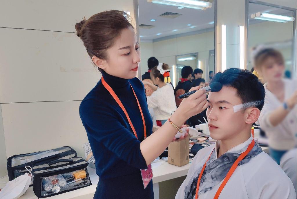据悉,焦珊老师先后参与涵盖春晚开场歌舞《如意舞步》、舞蹈《喜上枝头》、武术《笔走龙蛇》、歌曲《一起China Fun》、歌舞《潮汕舞英歌》、合唱歌曲《我的家》、军歌《青春奔赴》、歌曲《伟业》、舞蹈《太平有象》以及结束曲《难忘今宵》等12个节目的舞台化妆工作,累计工作近100个小时,为百余名演职人员提供妆造服务,以高水平专业能力、高标准艺术素养和高度的责任心使命感,圆满完成各项后台服务保障工作,为春晚演出成功贡献了山工艺力量。
