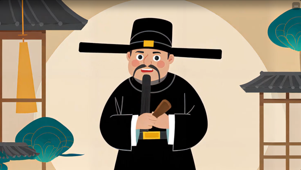 闫景林将合肥当地知名历史人物包公与现代网络诈骗问题巧妙结合,以动画小品的形式进行演绎。为了塑造一个与传统印象不同的和蔼可爱的包公形象,她利用即梦软件,通过文本生成视频的方式进行了包公人物形象的创作,她说“考虑到在新年的大背景下,我希望创作出与传统观念中的严肃铁面截然不同的一个和蔼可爱的形象,所以在提示词中加入了诸如“扁平化,可爱人物,平面动画风格”这类的风格限定词。” 成功生成了符合预期的包公形象,并以此为基础,创作了整部动画短片。