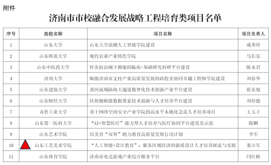 近日,济南市教育局公布了2024年度市校融合发展战略工程培育类项目名单,学校申报的“‘人工智能+设计教育’:服务区域经济的新质设计人才培养探索与实践”项目,成功获批立项。