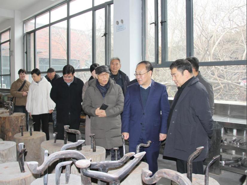 董占军代表学校党委、行政,代表学校全体师生,对各位专家学者的到来表示热烈的欢迎,并陪同评估专家组考察了学校美术馆、博物馆、文化创意产业园、现代手工艺实验室等办学条件,全面介绍了学校的优势资源与办学理念。