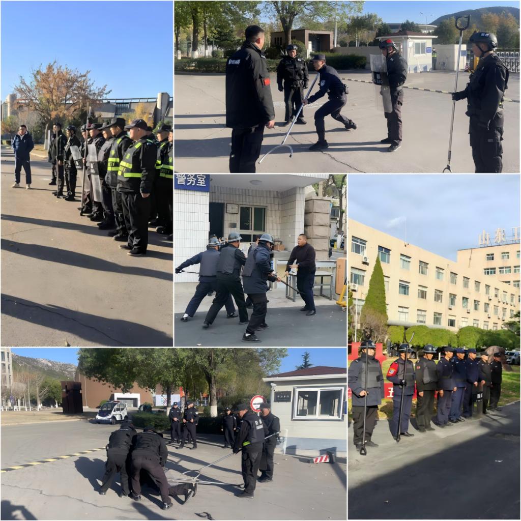 11月26、28日,千佛山校区、长清校区分别开展了反暴防恐专项演练。其中长清校区邀请分局民警教官霍彦东一行三人,为全体保安开展防暴恐专项培训。模拟情景演练中,门岗执勤队员迅速反应,果断关闭校门,启动校园紧急报警系统,利用防暴器械有效阻止嫌疑人进一步行动;校园“110”接警后,立即启动应急预案,调集安保力量赶赴现场进行处置,并同步向公安机关报告;制服并控制嫌疑人后,对事发地点及周边区域进行警戒,维护现场秩序,等待公安机关将嫌疑人带离。整个演练过程,执勤保安反应迅速果断,接警人员指挥调度有序,支援力量行动迅速、处置得力,展现了学校安保队伍良好的业务素质尤其是防暴处突工作能力。