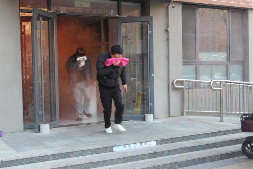 技能培训结束后,参训人员转移至学生公寓,通过场景模拟,演练火场逃生及紧急疏散。火情警报声响起后,宿舍管理人员第一时间将楼内各处逃生通道大门打开,组织疏散;同学们根据逃生要领,手捂口鼻,弯腰低姿,快速从各自宿舍房间按照指挥有秩序疏散,整个演练过程迅速、安全、有序。