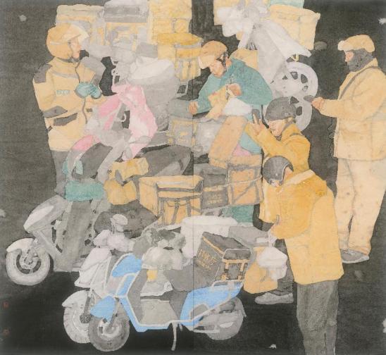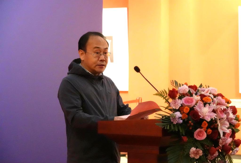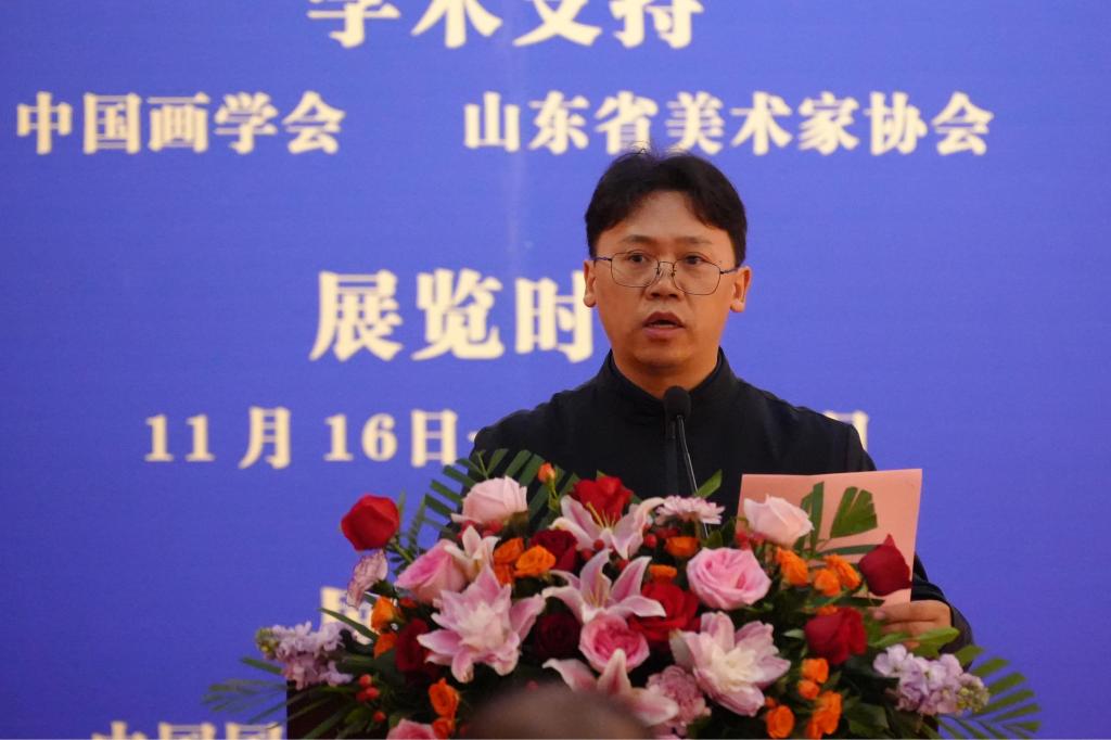 董占军在致辞中表示,苏国强作为学校专业教师,为人师表、身体力行,深受学生喜爱。同时,他也是一位热爱生活的艺术家,他所表现的内容,都是身边的事,身边的人,和生活息息相关。本次展览中的许多人物与花卉作品均来自他在课堂教学中的写生。从这些作品可以看出他对于中国画的思考,对于教学的思考,对于中国画传承与发展的思考。他的绘画语言独具特点,既有主题性创作,又有日常生活中蔬菜瓜果。他穿梭于人物、花鸟、山水,从不同的绘画题材中不断地汲取、融合、互补,坚持把没骨的方式放到生活中去感知,让生活的真善之美焕发出没骨画的新体验。在当代青年画家中形成了自己的风格,这是非常难能可贵的。