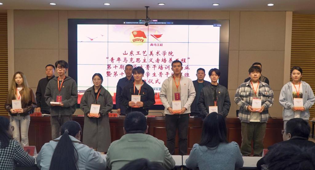 与会领导为第十期大学生骨干培训班学员代表颁发证书;为第十一期学员代表发放学习书目《中国共产党简史》。
