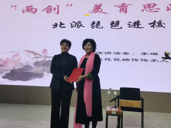 活动期间,王晓娟为李琳颁发“‘两创’美育思政课指导老师”聘书,并与李琳和同学们亲切交流。