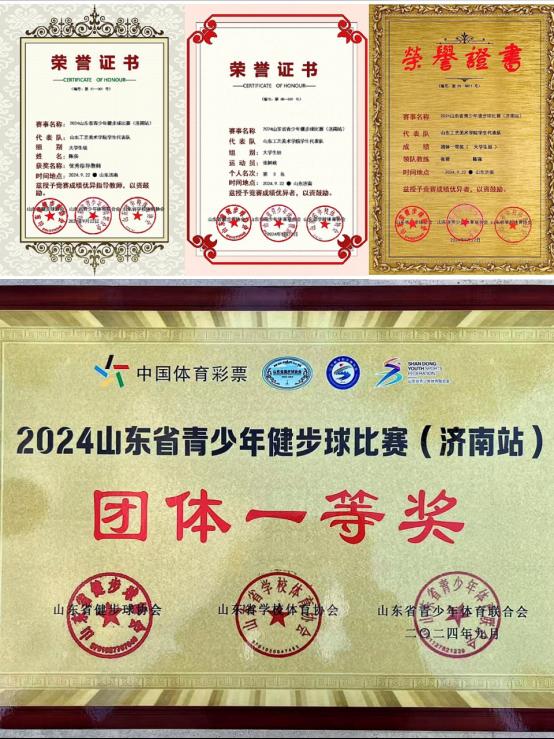 10月20日,山东省第十四届全民健身运动会健步球总决赛在山东潍坊举办,学校派出工业设计学院、数字艺术与传媒学院、人文艺术学院的共计5名学生参赛,由公共课教学部陈强老师带队。经过一天的角逐,我校代表队荣获团体二等奖的好成绩,其中个人一等奖两项、个人二等奖两项、个人三等奖一项,学校被评为“2024年度山东省健步球运动开展先进单位”。
