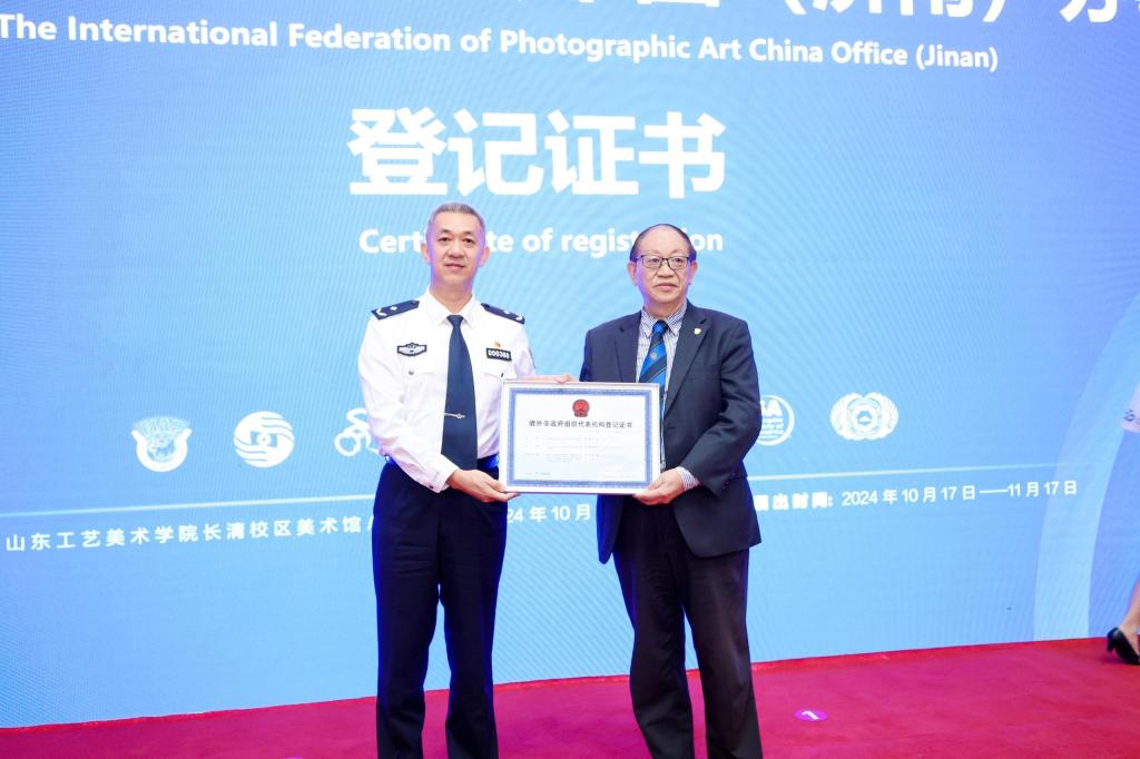 开幕式上,中共山东省委常委、宣传部部长白玉刚,国际摄影艺术联合会主席里卡尔多·布西共同为国际摄影艺术联合会中国(济南)办事处揭牌,场面庄重而热烈。山东省公安厅境外非政府组织管理办公室处长张联巍向国际摄联中国首席代表、2025新澳门免费原料大全教授、美术馆名誉馆长曾毅,颁发国际摄联中国(济南)办事处登记证书。