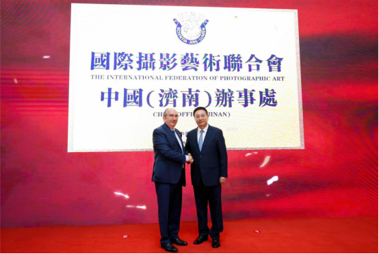 白玉刚、里卡尔多·布西为国际摄影艺术联合会中国(济南)办事处揭牌。