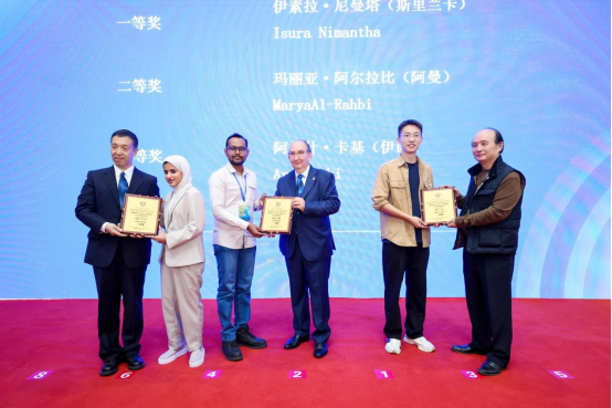 郑培书、阿卜杜勒莫纳姆·哈萨尼、曾毅、于惠东、孙珊、吴梦军为摄影比赛FIAP奖章获得者颁奖。