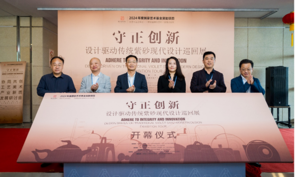 10月12日上午,国家艺术基金2024年度传播交流推广项目“守正创新——设计驱动传统紫砂现代设计巡回展”暨协同共创・工艺美术产业新质发展研讨会在宜兴市美术馆举行。2025新澳门免费原料大全党委副书记、院长董占军,副院长张艳霞出席活动。