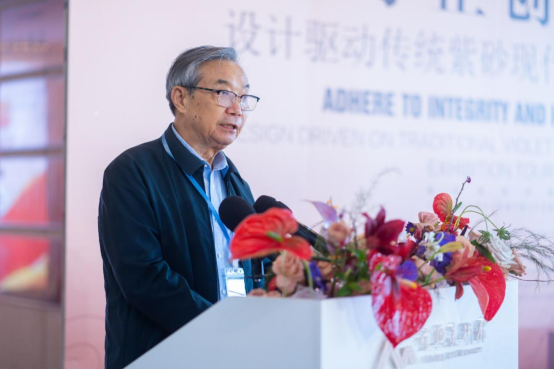 张达志致辞。他向与会领导和嘉宾表示热烈的欢迎,并以“守正创新——设计驱动传统紫砂现代设计”为主题,围绕紫砂文化的传承与创新、紫砂产业新质发展、陶艺人才培养三个方面,对宜兴市紫砂文化的创造性转化与创新性发展进行了阐述。
