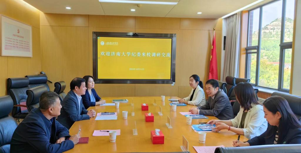 10月11日上午,济南大学党委常委、纪委书记、省监委驻济南大学监察专员续铁一行来校调研交流。党委书记王晓娟,党委委员、纪委书记、监察专员谷朝勇会见来宾。