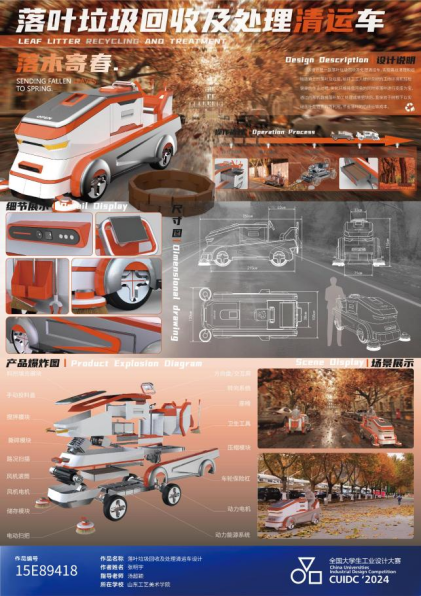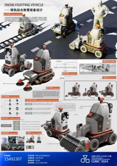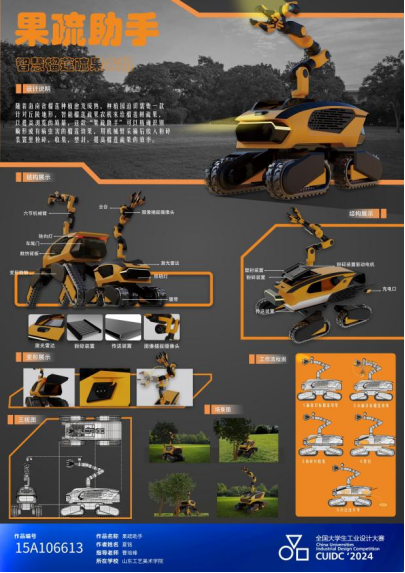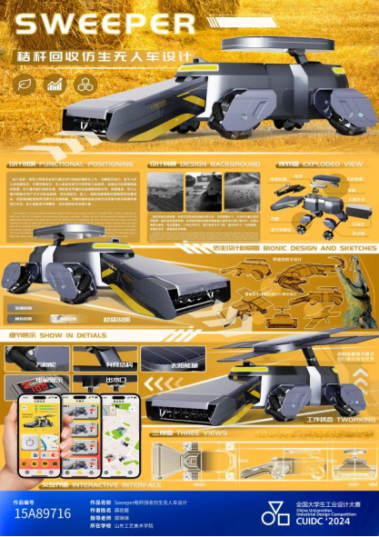 获得一等奖的《智慧农业挂轨监测与喷满系统》《未来概念月球勘探车设计》《果疏助手》《Sreeper秸秆回收仿生无人车设计》《铁轨站台除雪装备设计》《子母式微型概念电动车设计》《城市印象智能化影像创作微型电动车设计》《海上紧急救援设备设计》《一种家用螺丝刀》《落叶垃圾回收及处理清运车设计》10件设计作品被推送全国总决赛。