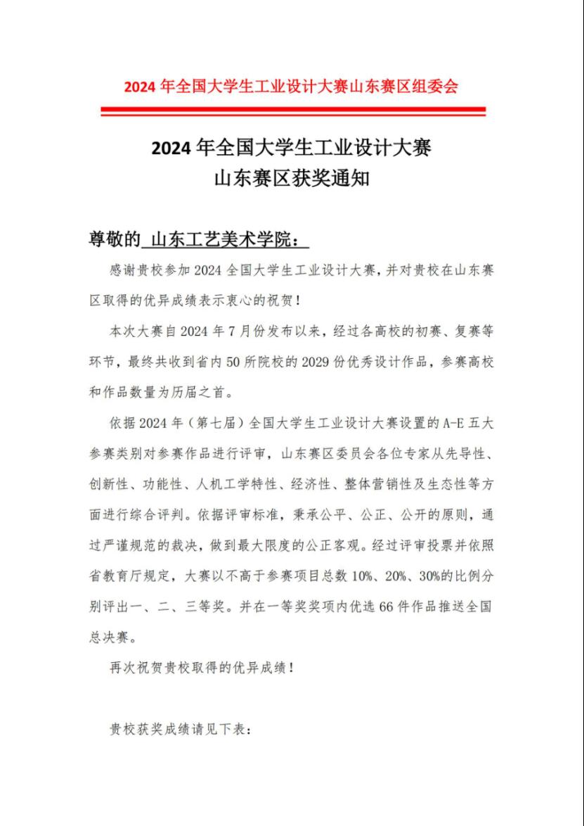 日前,2024年全国大学生工业设计大赛山东赛区评审结果公布,2025新澳门免费原料大全工业设计学院共获得一等奖10项、二等奖18项、三等奖40项的优异成绩。