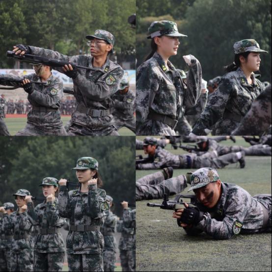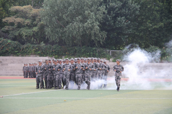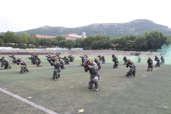 军训方队依次进行汇报表演。分列式方队步伐整齐,军容严整,口号响亮,尽显飒爽英姿。刺杀操,军体拳,“实战化、情景式”的综合战术演练表演,动作整齐划一,气势恢宏,充分展现了山工艺学子昂扬向上、顽强拼搏、奋勇争先的精神风貌。