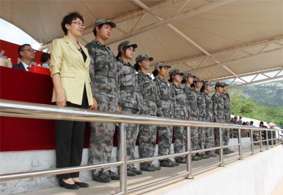 董占军代表学校全体师生员工向来自祖国各地的2024级2464名新同学表示热烈欢迎,向承担本次军训任务的全体教官表示衷心地感谢。董占军指出,半个世纪以来,工艺美院践行“天工开物 匠心独运”的校训精神,建构“设计学”的学科生态,培养全面发展的艺术人才,始终把传承匠心文脉、服务社会发展作为最崇高的使命和责任,在上合峰会、世博会、奥运会等重大活动中,传播中华美学精神,彰显文化“两创”担当。当前,学校正深化教育综合改革,全面提质增效,服务新质生产力发展,书写艺术设计的时代新篇。