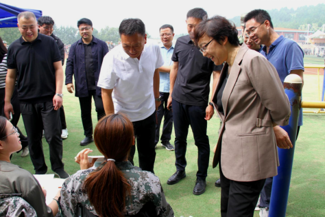 训练场上,2024级新生正在教官的悉心指导下进行各项训练。同学们军容整齐、军姿挺拔、精神饱满、口号嘹亮。王晓娟与正在进行队列训练的教官、学生亲切交谈,详细了解军训的进展情况,询问同学们的参训感受。她对全程参与军训工作的教官、医疗服务人员、新生辅导员的辛勤付出表示衷心感谢,对同学们服从纪律、全身心投入军事训练表示高度认可,鼓励参训新生要珍惜军训时光,增强国防观念,磨砺意志品质,为大学生活奠定坚实基础。