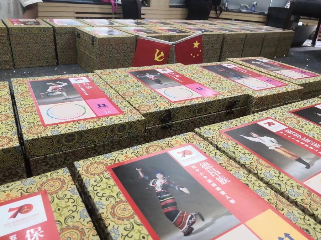 献礼70周年国庆的作品《盛世欢歌》,其创作过程最令人难忘。2019年4月,董凤岐接到上级通知,要精心创作一组面塑作品,主题为五十六个民族舞蹈庆祝的场景,献礼七十周年国庆。她积极响应组织号召,立刻投入到准备工作中。任务重,时间紧,她当日召集数名学生,组成精英团队,于次日开始着手工作。在时任院长潘鲁生的主创、指导和率领之下,创作团队怀着拳拳爱国之心,为赶时间完成任务,加班加点,团结协作,克服困难,历时4个月,团队的每一名成员均牺牲个人的休息时间,无一次请假,无一人缺席,大家团结互助,认真工作,最终高质量完成任务。作品在人物的塑造、舞姿的动态、色彩的艳丽、服饰的细节展示、人物的面部表情刻画等诸多方面,都进行了细致的思考和研究,力争打造艺术精品,最终于8月中旬完成并运往北京,国庆之际准时展现在人民大会堂国宴上。《盛世欢歌》作品受到领导、社会各界人士、国际友人的高度赞扬。这组作品让古老的民俗艺术——面塑,登上了国家级的庄重殿堂,艰辛繁复而又积极向上的创作过程令整个团队终生难忘。