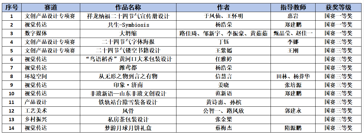 近期,2024年第八届米兰设计周·中国高校设计学科师生优秀作品展获奖名单公布,我校师生在命题、非命题、专项三个赛场,视觉传达、产品设计、环境空间、数字媒体、数字摄影、工艺美术、UI设计、虚拟IP设计、文创产品专项等多个赛道,获得全国总决赛一等奖3项、三等奖11项,获得山东省决赛一等奖6项、二等奖11项、三等奖24项。