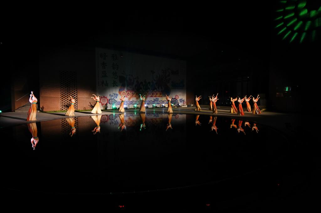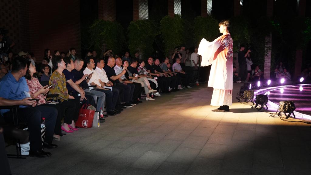 演出活动由古典乐器演奏、古典舞蹈、传统服饰走秀三部分组成,以雅乐为魂,以古礼为脉,用乐舞诠释中华优秀传统文化的精神特质和“制礼作乐”方式,生动展示传统艺术的雅韵与魅力,为师生提供深入了解非遗文化的平台。晚会在悠扬的古琴声中拉开序幕,特邀“溪山清乐”艺术组合成员古琴演奏家韩源泉(我校教师)、北派琵琶嫡传传人李琳、古典吉他演奏家韩洪涛与传媒学院辅导员许凤豪共同表演古琴《良宵引》、诗歌朗诵《春江花月夜》、琵琶《秋声》、琵琶与古典吉他合奏《琵琶语》、古典吉他演奏《山花之诗》等节目;服装学院2022级舞蹈表演班的13位同学带来古典舞蹈《唐印》;服装学院2021、2022、2023级表演专业的25位同学带来走秀节目《传统服饰》。演出节目将古典文化风度与当代审美生动融合,是学校对中华优秀传统文化创造性转化、创新性发展的生动实践。
