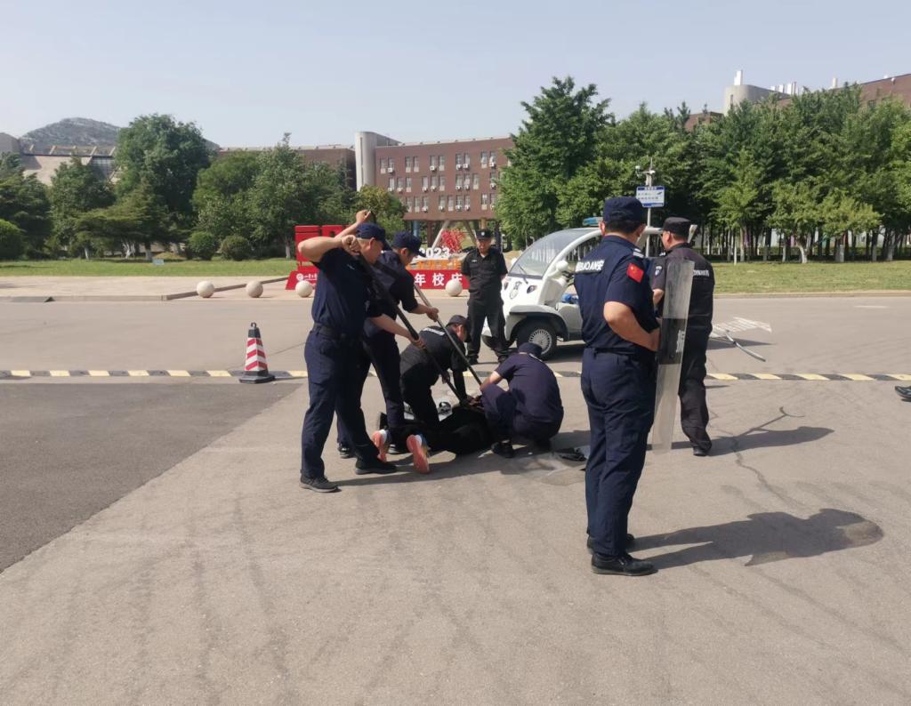 为有效防范和处置校园突发事件,切实保障师生员工生命财产安全,5月21日,学校在长清校区组织开展反暴防恐专项演练。党委委员、副院长韩文涛参加本次演练活动。