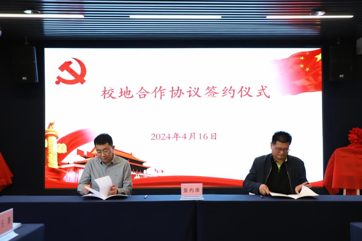 仪式中,学校团委、建筑与景观设计学院、五里沟街道党工委、槐荫团区委四方负责人分别签订了《校地融合共建协议》与《“百万大学生进社区”合作协议》。