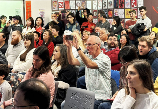 西班牙赫罗纳市市民活动中心人头攒动,热闹非凡,嘉宾和当地市民欣赏生肖龙设计展览,品尝中国美食,并积极参与互动活动。参与者们通过画“龙”图、写“龙”字、剪“龙”形等多种活动形式,展现活力四射的互动氛围,沉浸在中华传统节日的文化体验中。“我的生肖是龙,我很喜欢它。今年是龙年,让我感到无比幸运。”一位当地市民在活动中兴奋地说到。