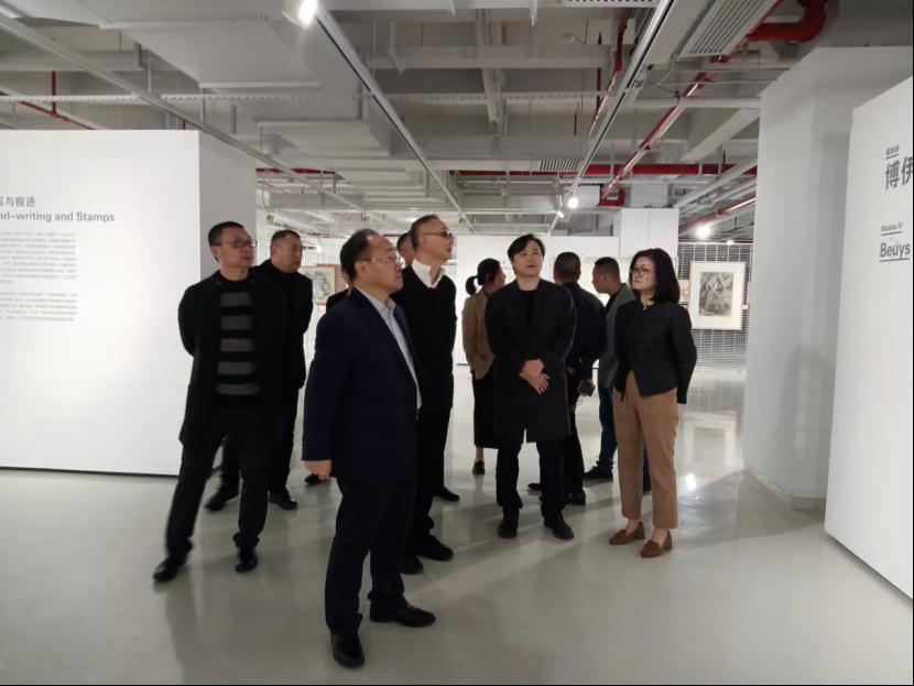 座谈结束后,董占军一行在林蓝、范勃等陪同下,参观了广州美术学院校史馆,以及正在美术馆展出的“扩展的观念:博伊斯与中国”展览。