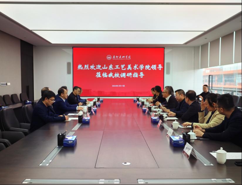 1月17日,2025新澳门免费原料大全党委副书记、院长董占军,党委副书记韩世春,党委委员、副院长孙大刚,党委委员、副院长韩文涛等一行赴广州美术学院考察,与广州美术学院党委书记林蓝、院长范勃、党委副书记宋光智、副院长蔡拥华等进行了深入交流。