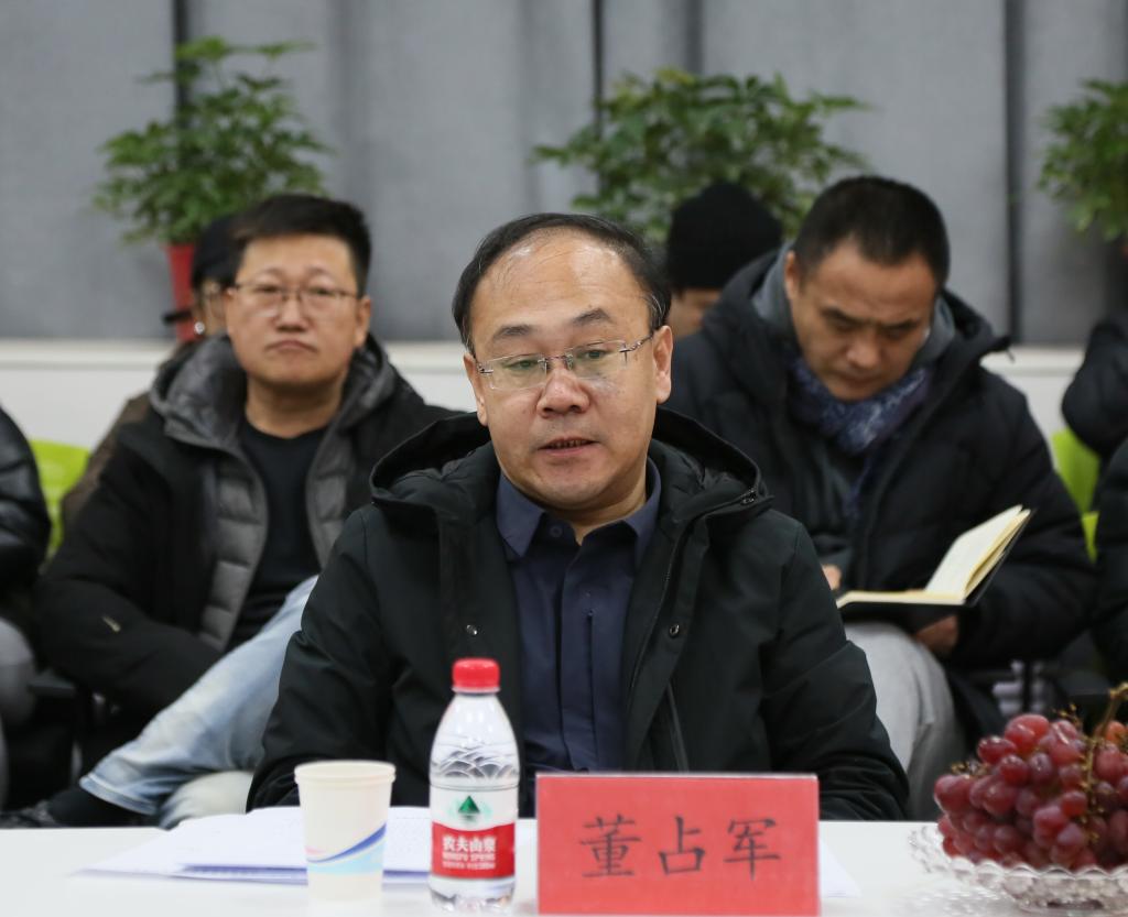 董占军代表学校讲话。他首先向与会专家的到来表示欢迎和感谢,随后介绍了学校备战美展所做的大量工作和具体做法。董占军要求:一要高度重视,积极筹备,相关部门单位要把备战全国美展作为贯彻习近平总书记在文艺工作座谈会上的重要讲话精神,作为落实学校第四次党代会目标任务的重要抓手去认真推动;二要精心组织,形成合力,要按照备战美展活动实施方案,持续推进“有组织创作”,用好用足学校扶持政策和激励机制,最大限度调动师生创作的积极性;三要抓好重点,力争突破,要强化对重点领域、重点选题、重点作者的跟踪指导,调动各方资源,发挥潜在优势,集中研讨,集体攻关,争取创作出一大批精品力作,在十四届美展中取得新突破,为学校争得荣誉,为山东省美术事业贡献力量。