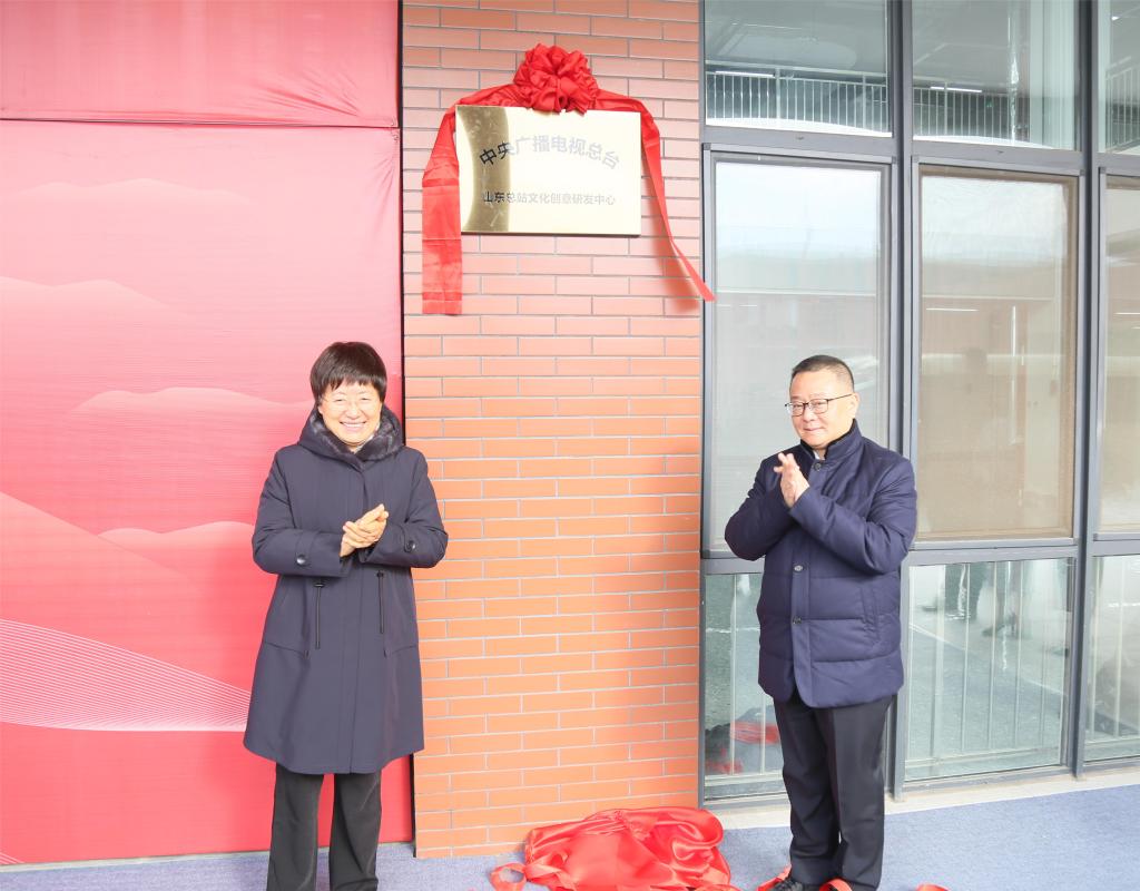 胡劲军与王随莲共同为中央广播电视总台山东总站文化创意研发中心挂牌。