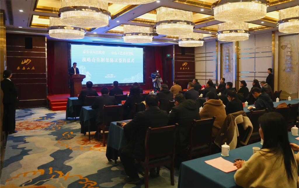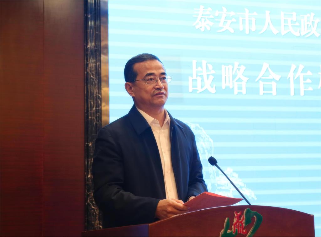王晓娟致辞。她表示,多年来,学校与泰安市开展了多领域的交流与合作,建立了深厚的友谊,打下了良好的合作基础。此次校地战略合作协议的签署,是双方人才优势、资源优势的强强联合,标志着校地合作进入了一个更深、更广、更实的层面,开启了新的合作里程。学校将以此次签约为契机,结合泰安市优越的产业动能和丰厚的文化积淀,发挥学校学科专业与人才智力优势,建立校地合作发展常态交流机制,用创意的智慧和设计的力量,更好地赋能泰安市文化建设和经济社会发展。