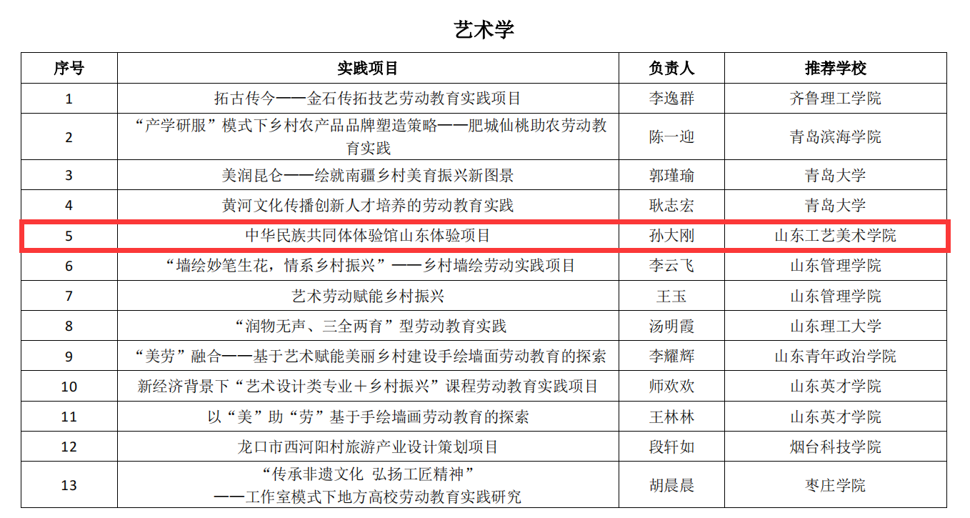 近日,山东省教育厅公布了山东省普通本科高校劳动教育典型教学案例和实践项目遴选结果,我校3个案例和1个实践项目入选山东省普通本科高校劳动教育典型教学案例和实践项目。