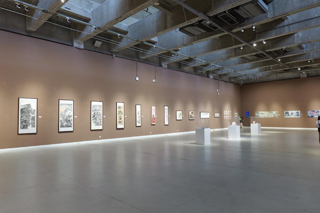 山东省大学生艺术展演由山东省教育厅主办,每三年举办一届,是目前省内规格最高、规模最大、影响最广的大学生艺术盛会。本届展演活动的主题为“厚植家国情怀,涵养进取品格”。我校承担学生艺术作品类评选相关工作,共收到来自63所高校寄送的作品原件807件,经专家组评选,94件优秀作品进行展演,其中绘画类32件、书法篆刻类31件、摄影类9件(套)、设计类22件(套),具有代表性的15个高校工作坊现场进行线下展演与互动。