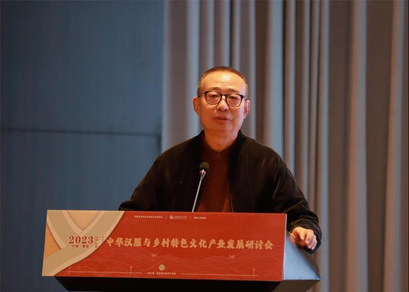 研讨会之前,潘鲁生出席2023曹县首届汉服文化节启动仪式,并与周生宏共同为e裳小镇·曹县数字经济产业园揭牌。韩文涛在启动仪式上致辞。