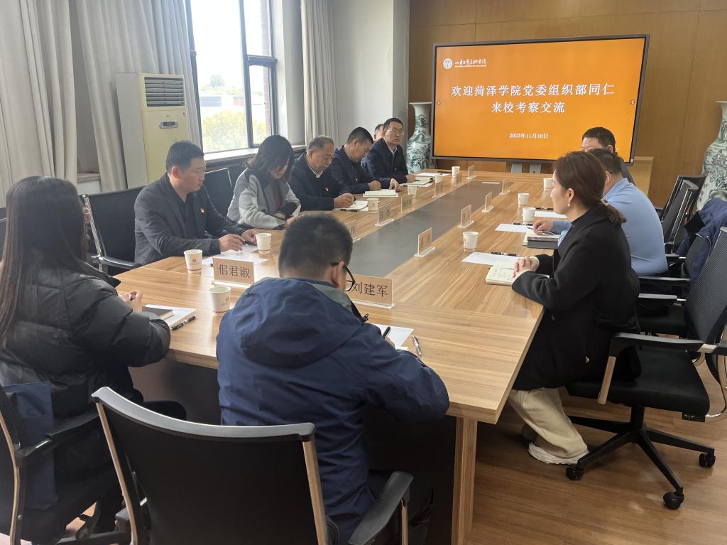 11月10日,菏泽学院党委组织部正处级组织员、机关党委副书记杨洪海一行来校考察交流。党委副书记韩世春,纪委书记谷朝勇,党委委员、组织部部长许磊在长清校区会见来宾。