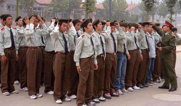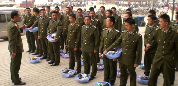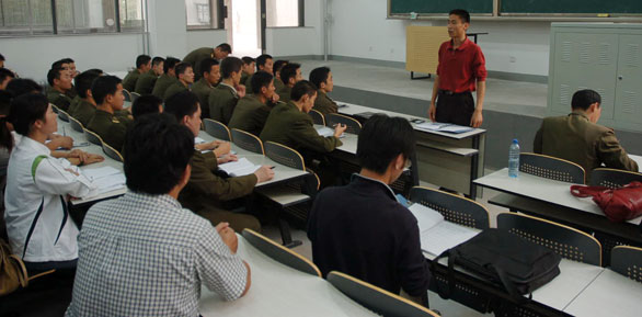 3点15分,各营教官在辅导员的引领下到各学院军训地与06级新生见面。教官们首先要求学生思想端正,认真对待,以优异成绩结束军训课程。同时,教官们还编制了军训队伍,整治了军容,讲授了军训常识。教官们的军训第一堂课,赢得了学生的满堂彩。