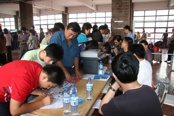 报到工作在国庆假期期间进行,广大志愿者提前准备、密切配合、加强沟通,采用流水线式工作程序,基本实现了新生报到一条龙服务,深得广大新生及家长的满意。在报到现场,醒目的迎新条幅、报到流程图、各二级学院宣传海报、营造了校园热烈的气氛,整个迎新工作处处展现了我校的良好形象和师生的精神面貌。