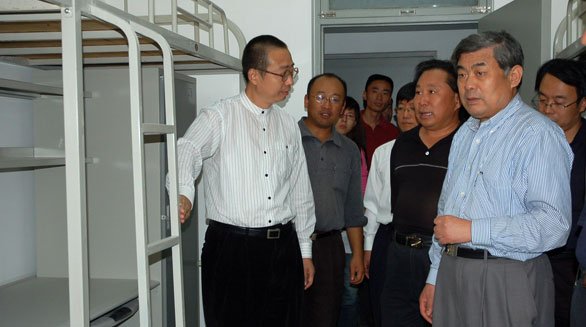 院长的带领下,各位领导全面了解了长清校区的建设情况。潘院长首先对长清校区建设指挥部的辛勤劳动表示感谢,对奋战在建设和迎新一线的工作人员表示慰问。学校各位领导从综合楼到多功能厅,再到19号新生学生公寓,详细察看了建设现状。潘院长要求各有关部门团结协作,努力做好迎新准备工作。尤其是学生的生活及安全问题,潘院长强调要及时解决。据建设指挥部介绍,目前19号公寓已整体竣工,环境清理已到最后阶段,工作人员正加班加点,进行内部卫生清洁,保证为新生提供一个良好的生活环境。