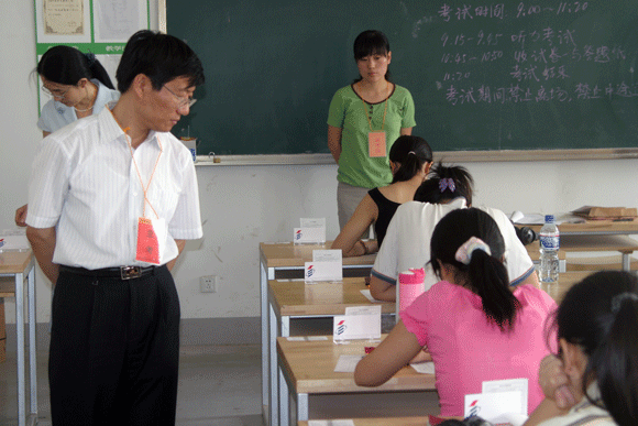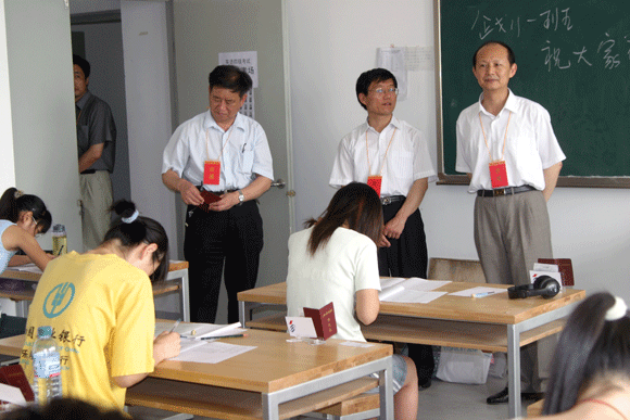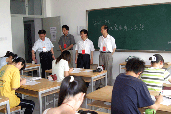 宋厅长在张云龙副院长的陪同下首先到英语四级考试考场察看了考生考试情况及考场内考试秩序, 我院英语四级考试考场内秩序井然有序,宋厅长对我院的考试组织工作表示满意。