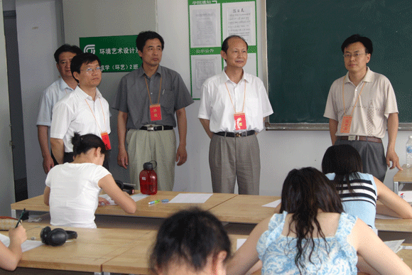 察看考场后,宋厅长又察看了新校区基础工程建设情况,察看了综合楼、教学楼,认为我院富有特色的建筑形式与各建筑的内部功能划分,很有艺术院校特色。