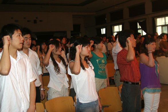 毕业生代表肖楠带领全体毕业生进行毕业宣誓。