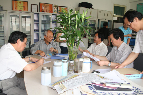 检查结束后,检查组全体成员在评建办公室召开了碰头会,对一天的检查进行了总结交流,尚奎舜、赵德昌、周作民、沈祝华4位教授和评建办的同志分别就检查情况谈了看法,4位老教授对我校今后的评建工作提出了很好的意见和建议。